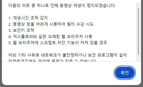 브라우저에 영상 관련 확장 프로그램 사용 시 위와 같은 오류가 발생할 수 있습니다.