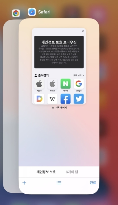 백그라운드(실행 중인 앱)에서 브라우저 앱을 종료한 후 다시 접속하여 재로그인 후 수강해 주시기 바랍니다.